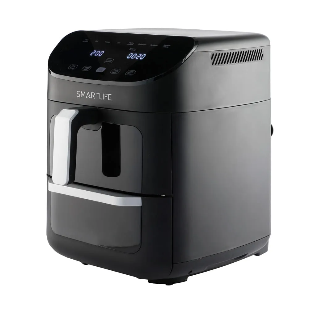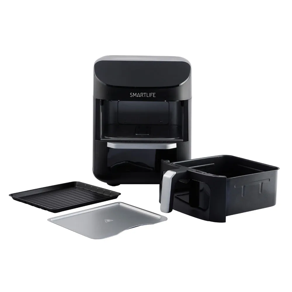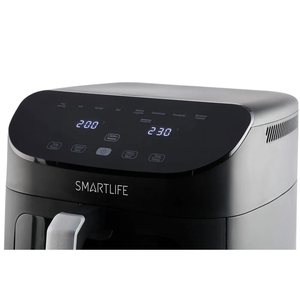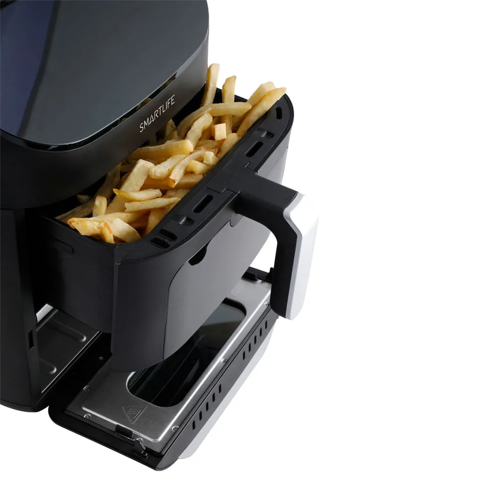 Descubrí la nueva Smartlife 11 Lts, la freidora de aire que transforma tu cocina. Con su zona de doble cocción, podés preparar dos platos a la vez sin mezclar sabores. Su panel digital táctil permite programar hasta 60 minutos y ajustar la temperatura de 40°C a 230°C, asegurando resultados perfectos en cada receta.