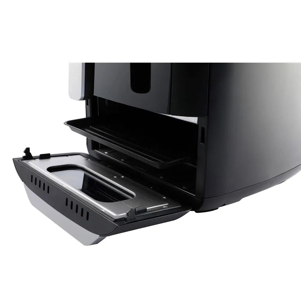 Su diseño moderno en negro y plata incluye ventana de visualización y un canasto antiadherente fácil de limpiar, apto para lavavajillas. Con 8 programas automáticos, esta freidora es ideal para quienes buscan cocinar de manera rápida, saludable y deliciosa, sin renunciar al sabor y la textura crujiente de los alimentos fritos.